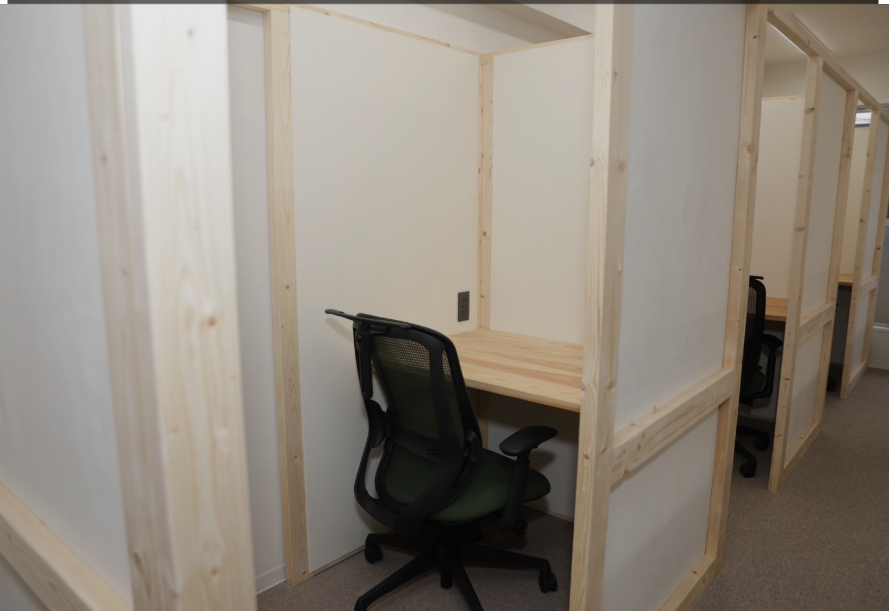 ●個室→扉がついており、プライベートを確保できるので、事務所使いや集中して従事されたい方にもピッタリ。個人情報などの取り扱いのある作業にも最適です。
